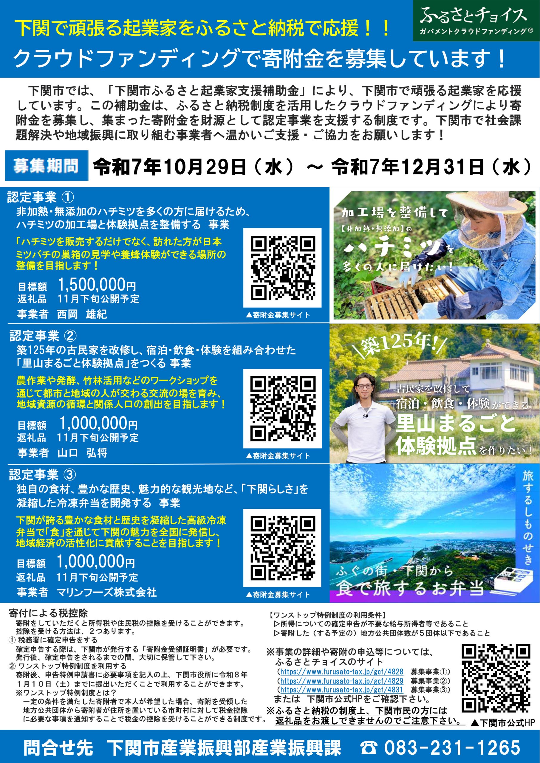 【問合せ先】下関市産業振興部産業振興課 ☎ 083-231-1265